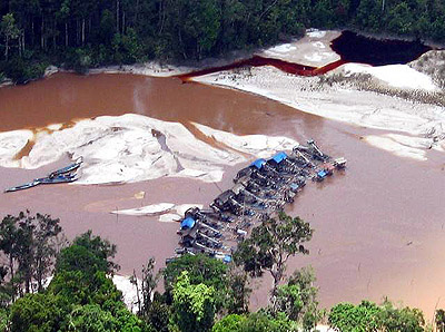 Kalimantan adalah sebuah pulau dimana banyak ditemui sungai-sungai, dan sudah secara tradisi merupakan sumber emas. Pinggiran sungai umumnya didominasi sebagai daerah kerja kelompok masyarakat Dayak.Skala operasi mereka semakin meningkat belakangan ini melalui penggunaan mesin sedot di bagan terapung (lanting). Kegiatan tambang rakyat saat ini juga telah menyebar hingga ke daerah-daerah pedalaman yang menyebabkan meluasnya kerusakan lingkungan.