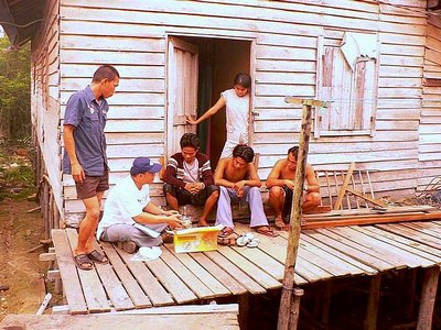 | Penyuluhan kepada masyarakat penambang di sungai yang diberikan dengan bahasa Dayak . |