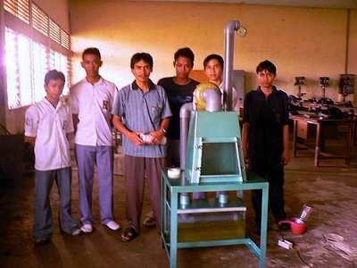 | Lima Siswa STM bekerja diawasi oleh gurunya untuk membuat suatu prototype cerobong asap. |